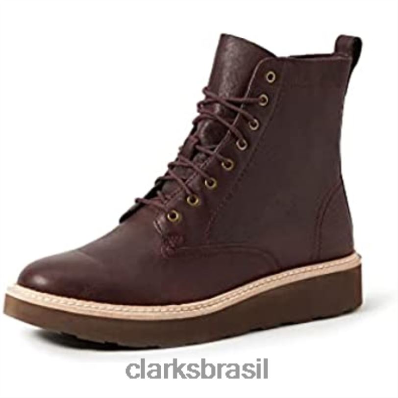 Clarks mulheres bota feminina Clarks Dark Tan Leather Nalle Mid RJZRN33 couro castanho escuro