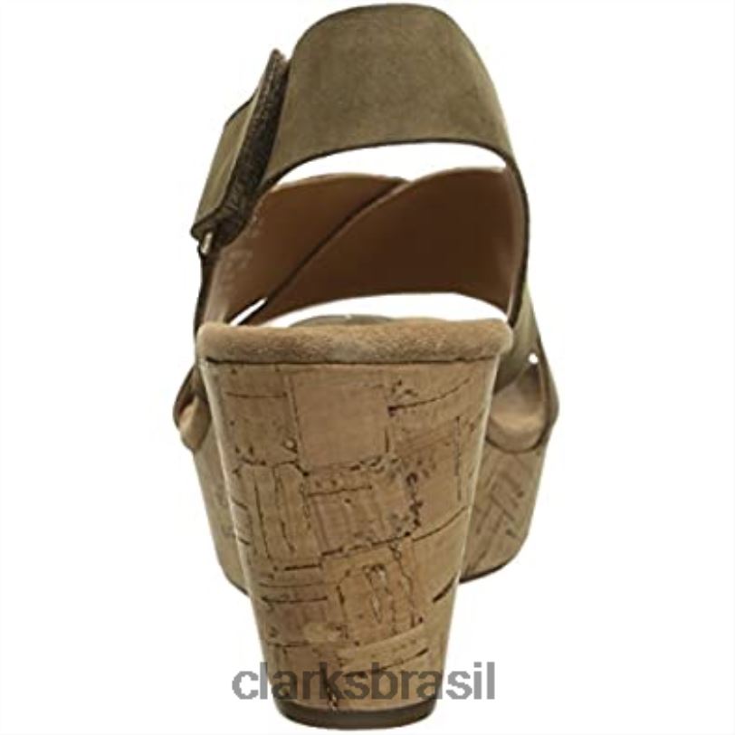 Clarks mulheres Clarks caslynn feminino shae cunha sandália preta nobuck cáqui RJZRN2418 cáqui