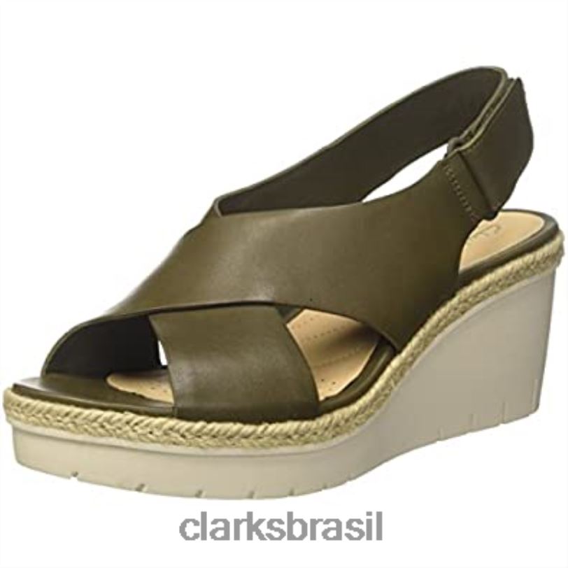 Clarks mulheres Clarks couro cáqui verde feminino palm g sandálias com tira baixa no tornozelo RJZRN2563 couro cáqui verde