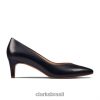 Clarks mulheres Clarks de couro azul marinho Laina 55 Court2 RJZRN4003 couro marinho