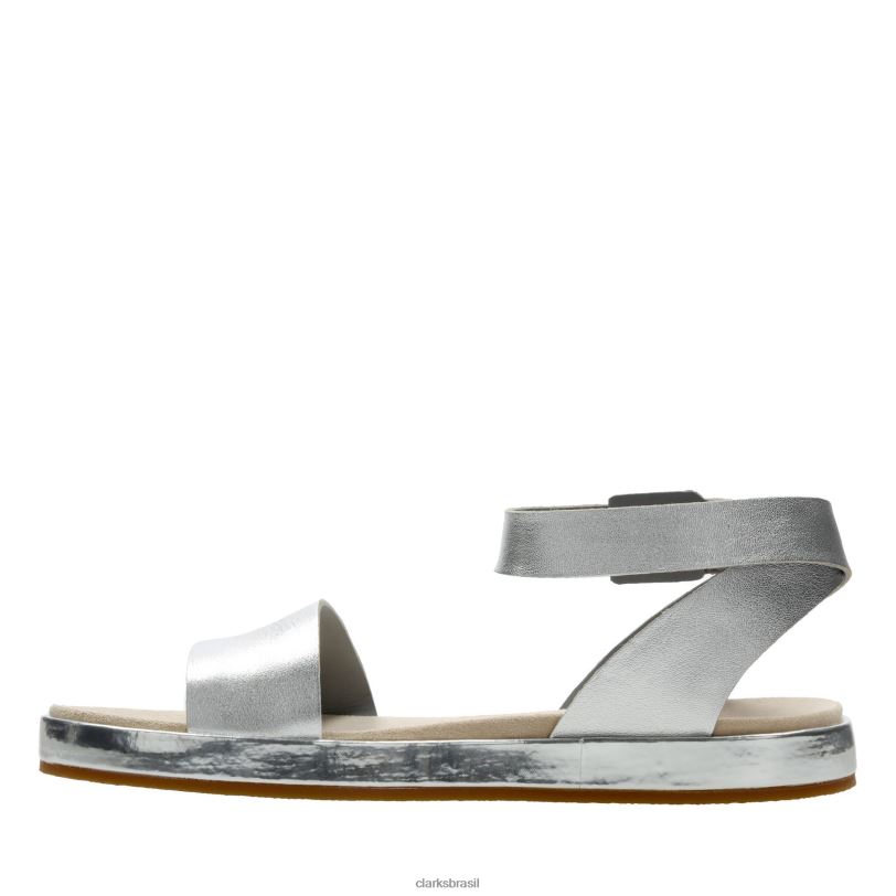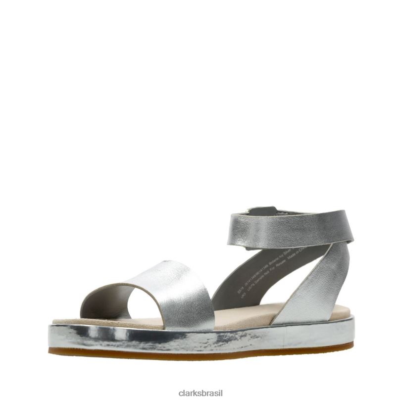 Clarks mulheres clarks de couro prateado com hera botânica RJZRN3422 couro prateado
