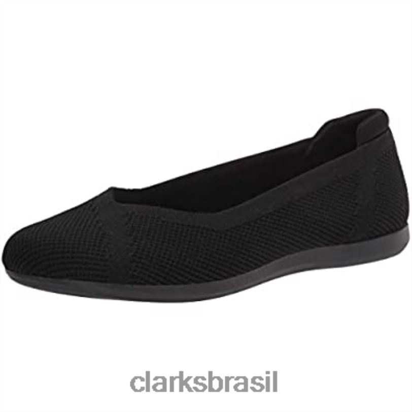 Clarks mulheres Clarks malha preta feminina Carly Wish Ballet Flat RJZRN521 malha preta
