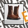 apresentando uma bota ousada e que está na moda: a malha tilham. em couro liso castanho escuro para uma sensação premium