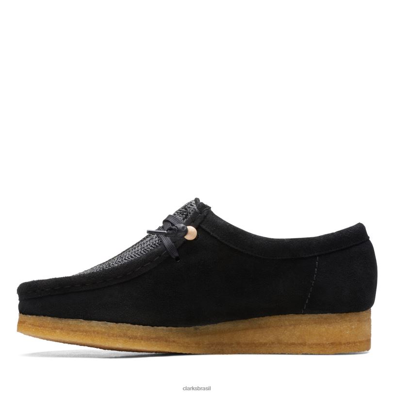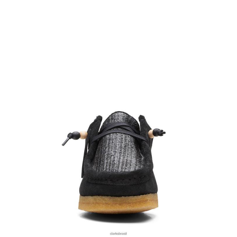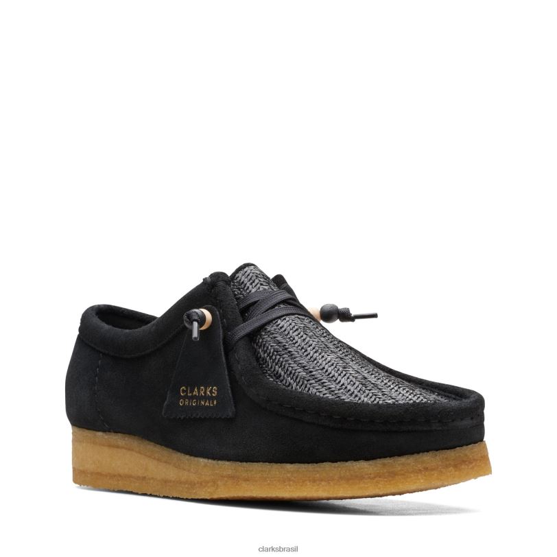 Clarks mulheres clarks wallabee preto de ráfia RJZRN3412 ráfia preta