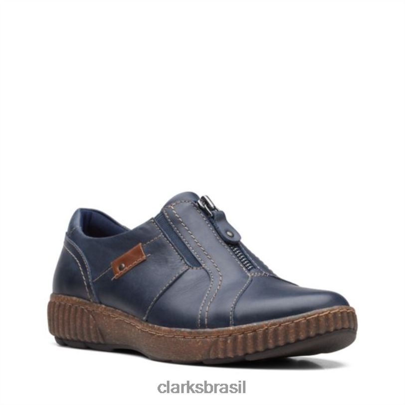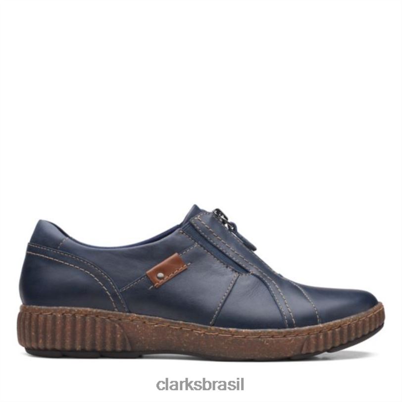 Clarks mulheres couro marinho clarks magnolia zip couro marinho RJZRN6123 couro marinho