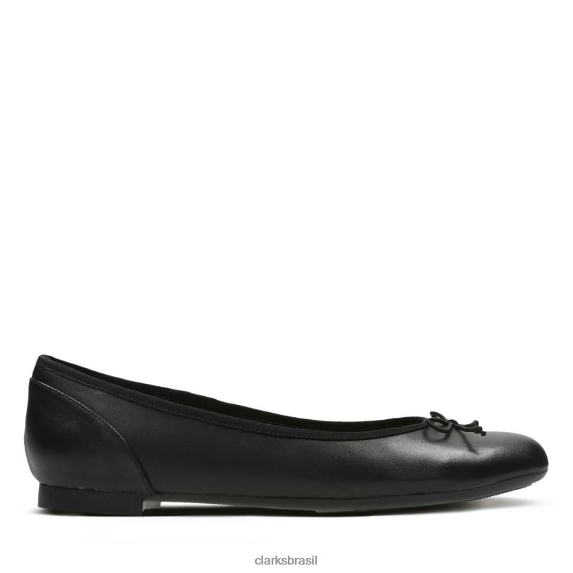 Clarks mulheres Clarks Couro Preto Feminino Alta Costura Bloom Ballet Flat RJZRN184 couro preto