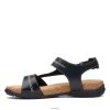 costura artesanal dá um toque terroso à sandália básica roseville mae. sua parte superior ajustável em couro preto robusto proporciona um ajuste confortável aos pés