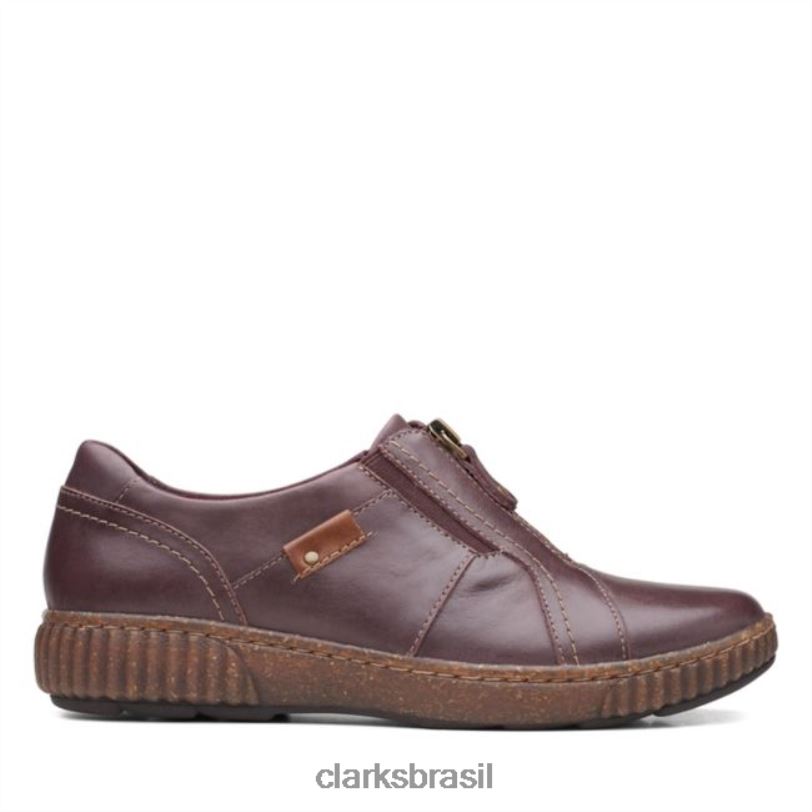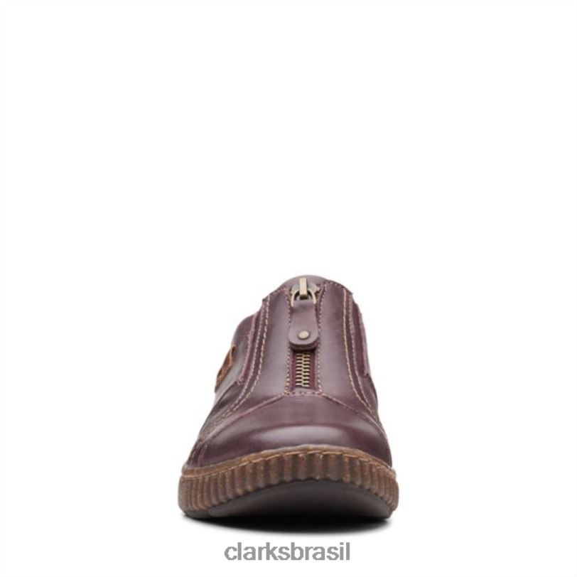 Clarks mulheres Magnólia Zip Couro Borgonha Clarks Couro Borgonha RJZRN6126 couro bordô