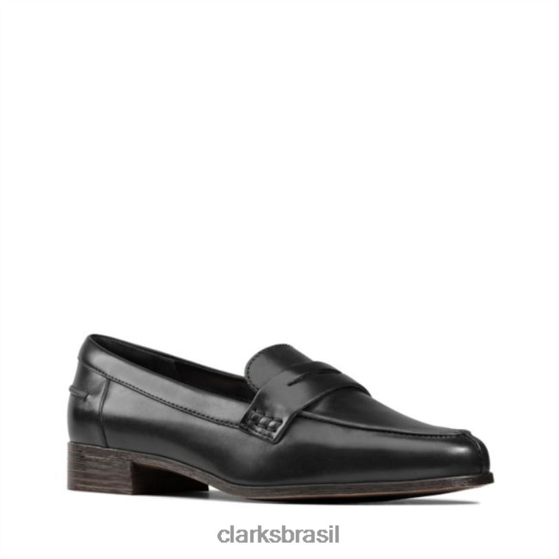 Clarks mulheres mocassim clarks hamble de couro preto RJZRN5072 couro preto