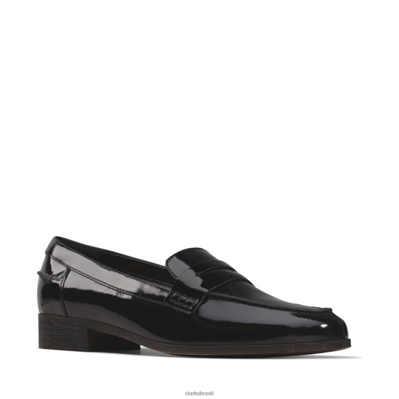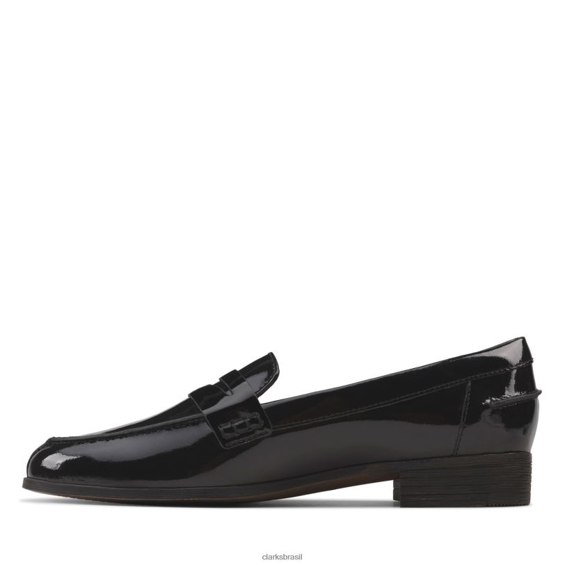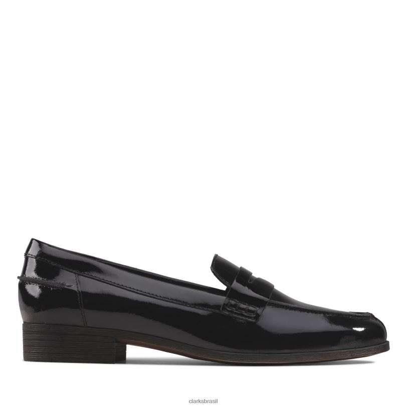 Clarks mulheres Mocassim Clarks Patent Hamble Preto RJZRN3033 patente preta