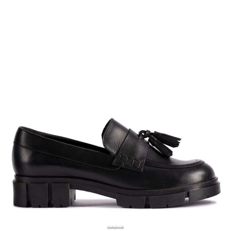 Clarks mulheres mocassim clarks teala de couro preto RJZRN3105 couro preto
