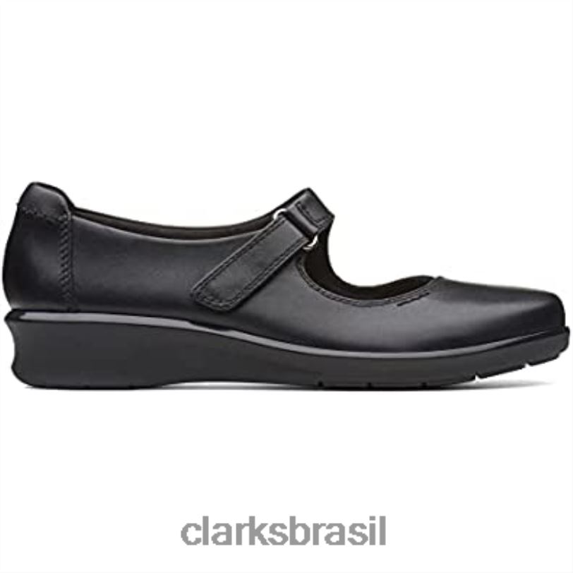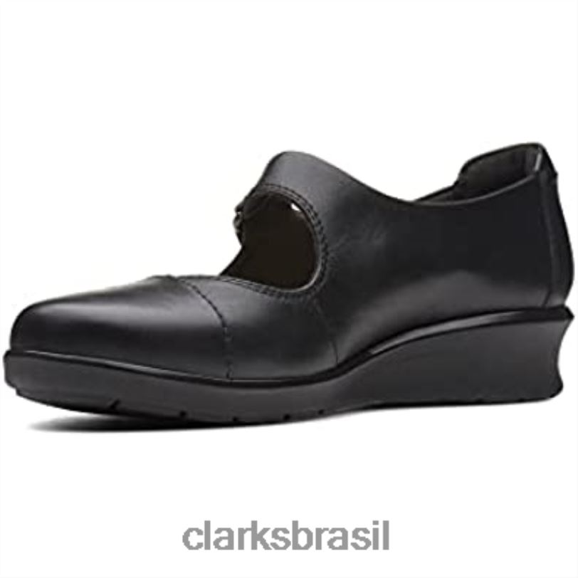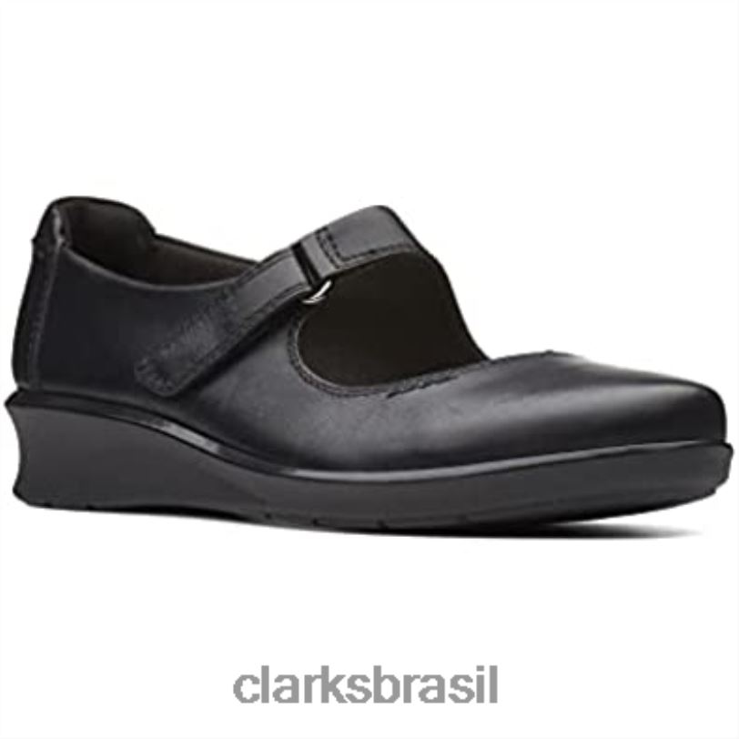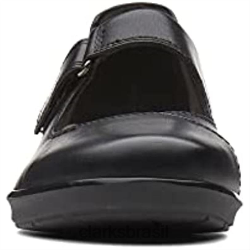 Clarks mulheres Clarks Couro Preto Feminino Alta Costura Bloom Ballet Flat RJZRN184 couro preto
