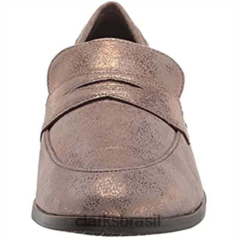 Clarks mulheres mocassim feminino trish rose clarks cobre metálico RJZRN2423 cobre metálico