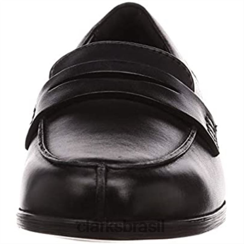 Clarks mulheres Clarks Couro Preto Feminino Alta Costura Bloom Ballet Flat RJZRN184 couro preto
