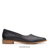 Clarks mulheres Clarks Couro Preto Feminino Alta Costura Bloom Ballet Flat RJZRN184 couro preto