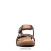 costura artesanal dá um toque terroso à sandália básica roseville mae. sua parte superior ajustável em couro metálico robusto proporciona um ajuste confortável aos pés