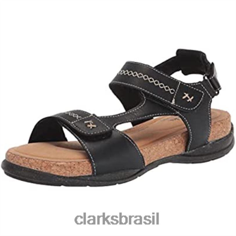 Clarks mulheres sandália clarks feminina roseville mae de couro preto RJZRN1803
