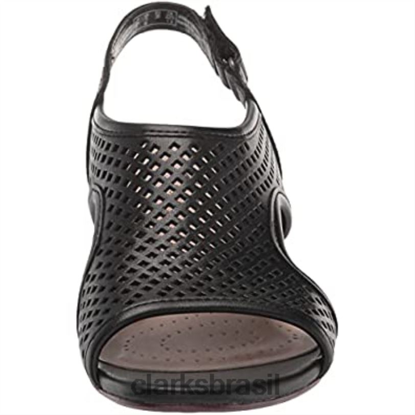 - um salto médio esculpido e couro preto de origem responsável dão à sandália caroleigh star uma sensação premium e contemporânea