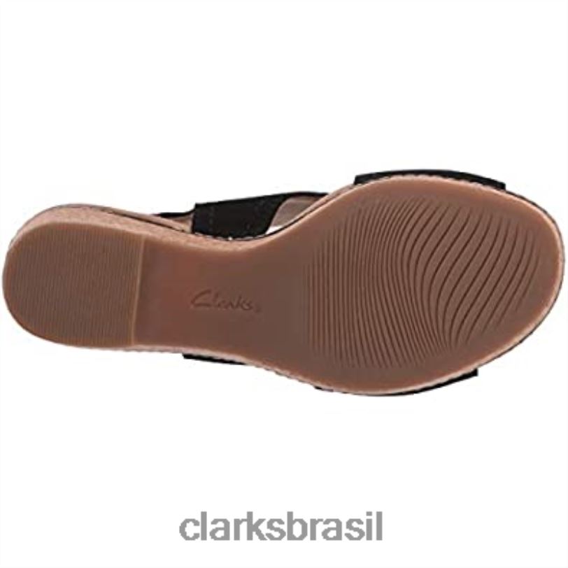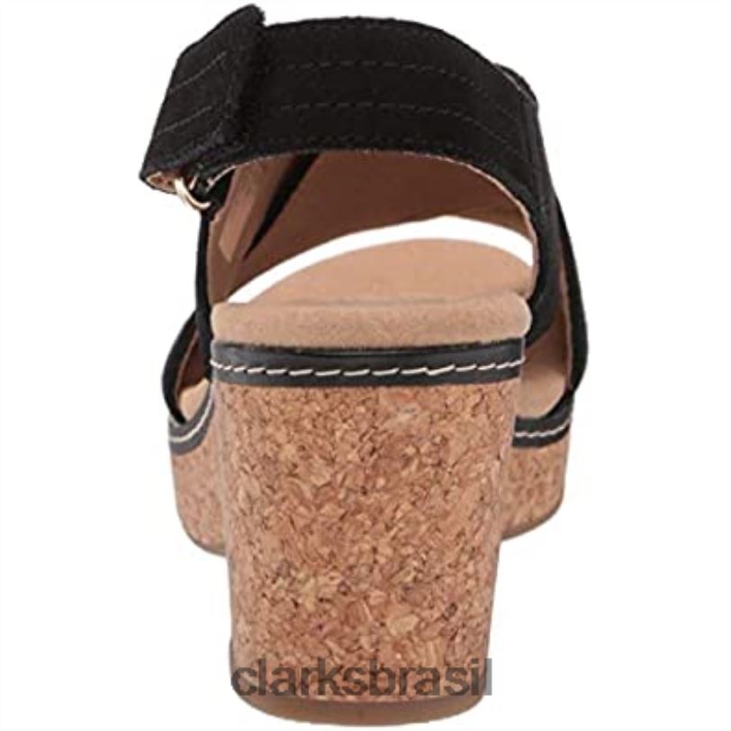 Clarks mulheres sandália feminina giselle cove cunha clarks couro preto RJZRN1093 couro preto