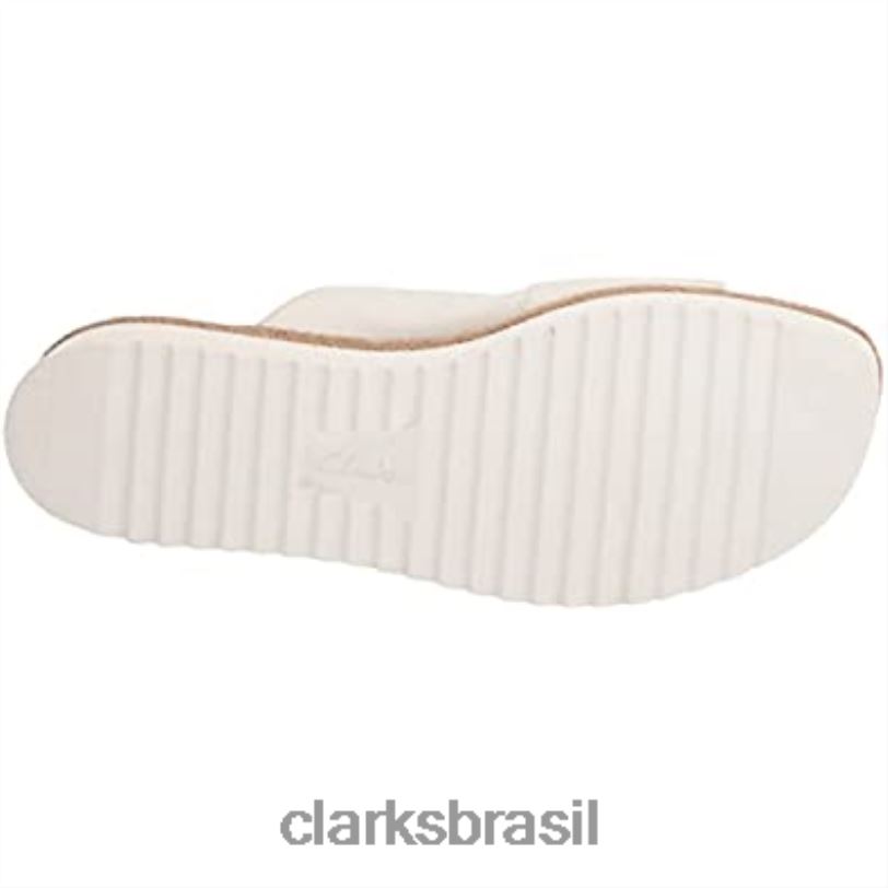 Clarks mulheres sandália lana beach slide feminina de couro branco clarks RJZRN1721 couro branco