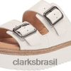 Clarks mulheres sandália lana beach slide feminina de couro branco clarks RJZRN1721 couro branco