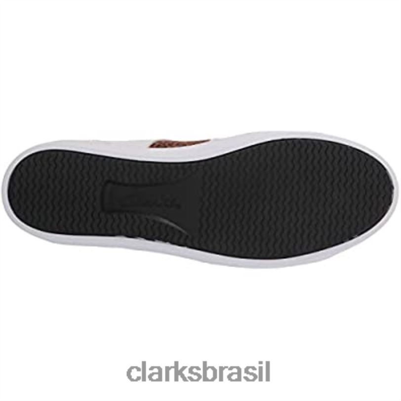 Clarks mulheres tênis clarks feminino pawley rilee branco couro/leopardo combi RJZRN2778