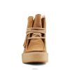 atacadores extra longos amarrados em torno da bota wallabeecup hi slouch inspirada no arquivo com seu forro quente de lã. um toque moderno de cor na parte superior de camurça bege claro premium com costura lateral autêntica e uma sola de crepe que envolve a lateral para o visual definitivo de cupsole.