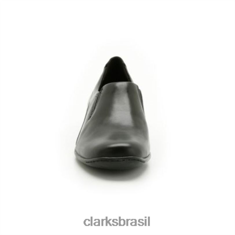 Clarks mulheres Clarks Couro Preto Feminino Alta Costura Bloom Ballet Flat RJZRN184 couro preto