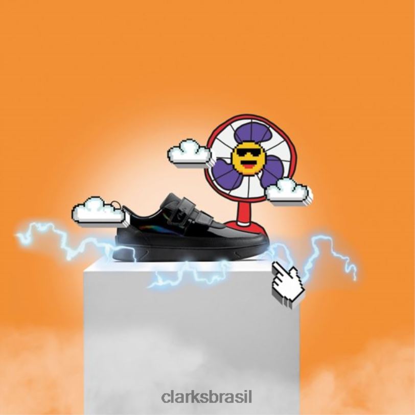 Clarks unissex Clarks Black Patent Vibrante G Low Kid Black Patent RJZRN5889 patente preta