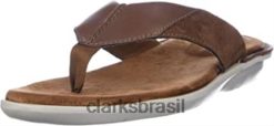 Clarks homens chinelo Clarks masculino de couro marrom ellison easy RJZRN1168 couro bronzeado