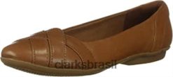 Clarks mulheres sapato de balé Gracelmia feminino em couro marrom clarks RJZRN1572 couro bronzeado