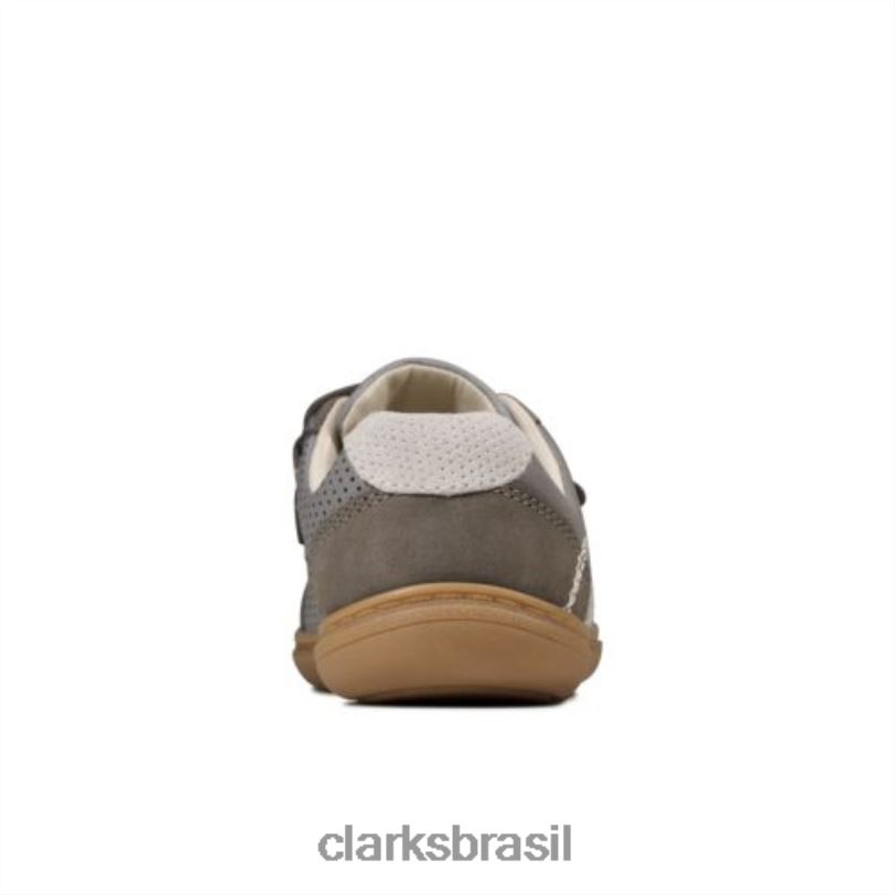 Clarks crianças tênis flare bug k masculino de couro cinza escuro clarks RJZRN820 couro cinza escuro