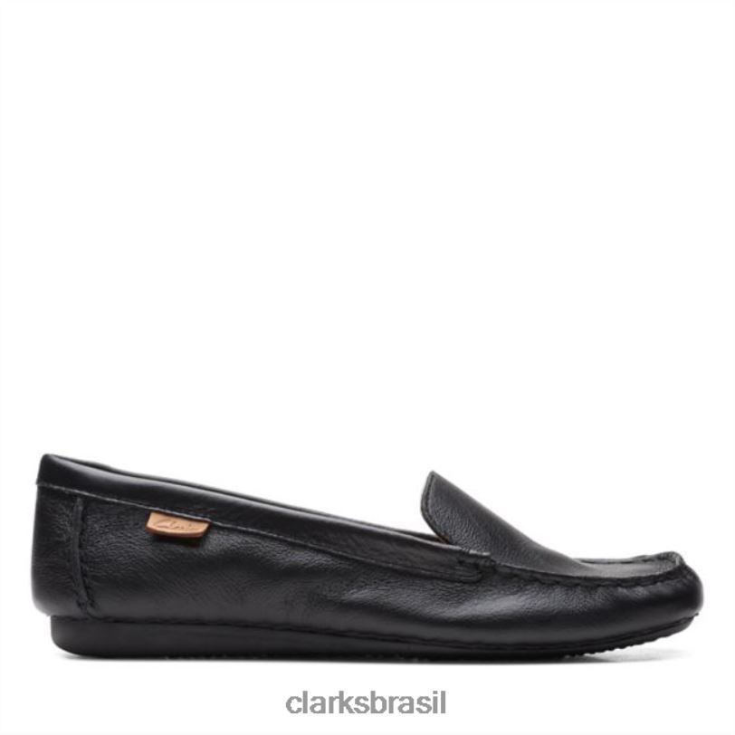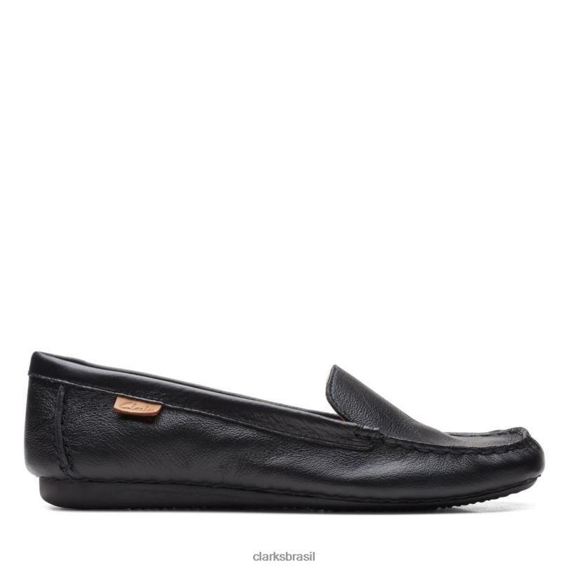 Clarks mulheres Clarks Couro Preto Feminino Alta Costura Bloom Ballet Flat RJZRN184 couro preto