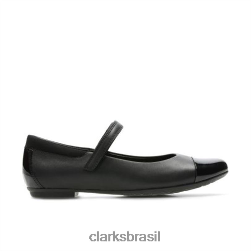 Clarks unissex Clarks de couro preto tizz talk jnr g fit RJZRN4744 couro preto