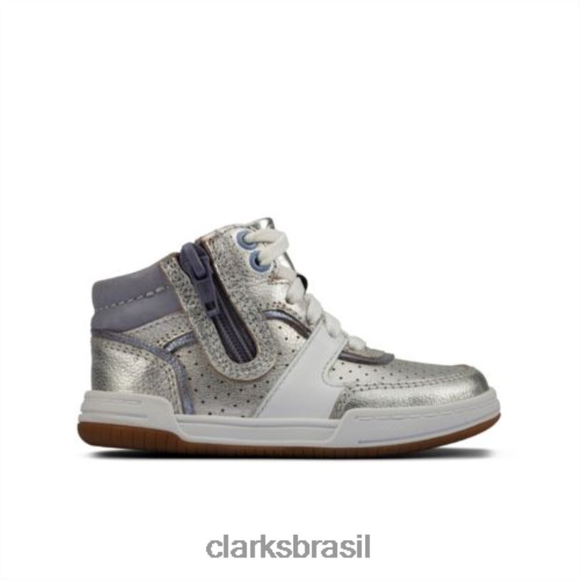 Clarks crianças clarks rex quest fst h fit couro prateado RJZRN4600 couro prateado