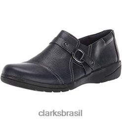 Clarks mulheres sandália clarks feminina leisa lakelyn em couro azul marinho RJZRN1867 couro marinho