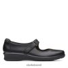 Clarks mulheres Clarks Couro Preto Feminino Alta Costura Bloom Ballet Flat RJZRN184 couro preto