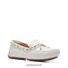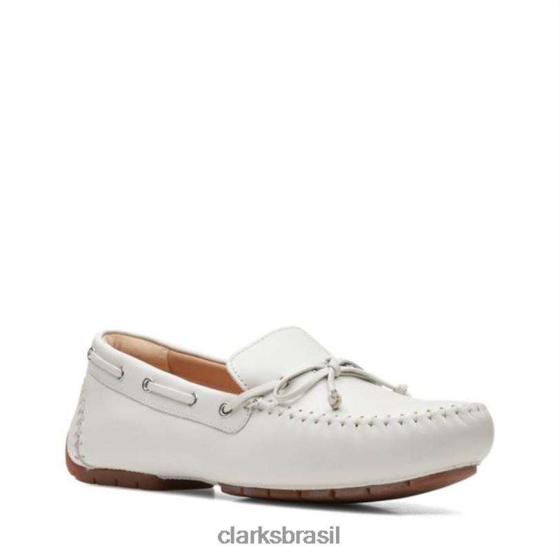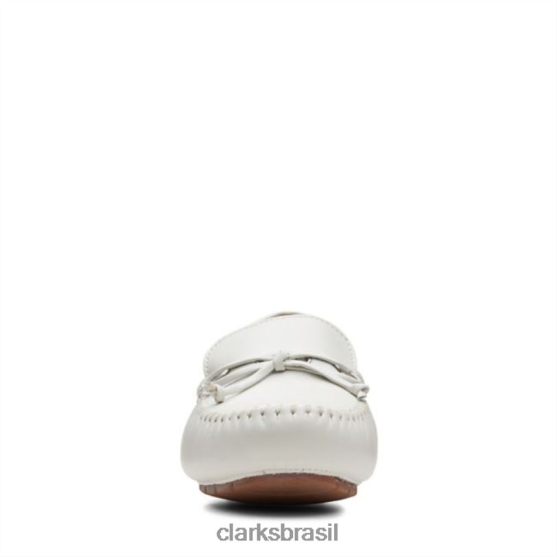 Clarks mulheres mocassim marie pérola feminino de couro branco clarks RJZRN692 couro branco