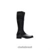 a parte superior de couro liso desta bota é em camadas e lindamente combinada com um salto leve para criar elegância