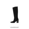 botas elegantes de cano alto são óbvias nesta temporada e o aumento do parque é o nosso novo favorito. sua silhueta suave em camurça preta é construída sobre um moderno salto bloco