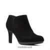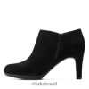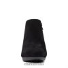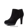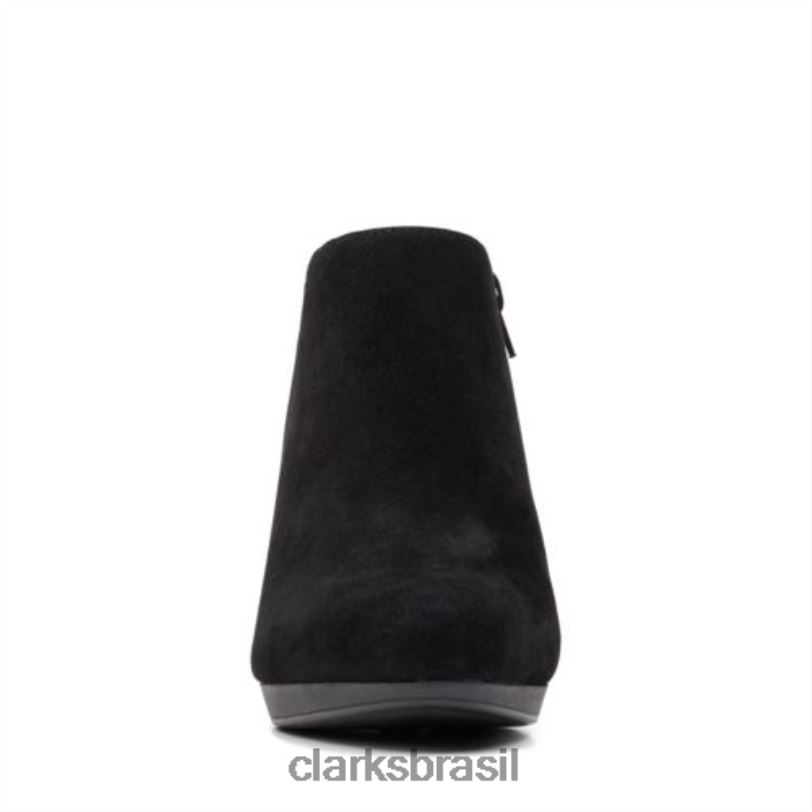 uma bota feminina elegante e elegante, projetada em camurça preta. a parte superior do vestido chique assenta sobre um salto alto de 8,5 cm e uma plataforma esculpida para maior impacto